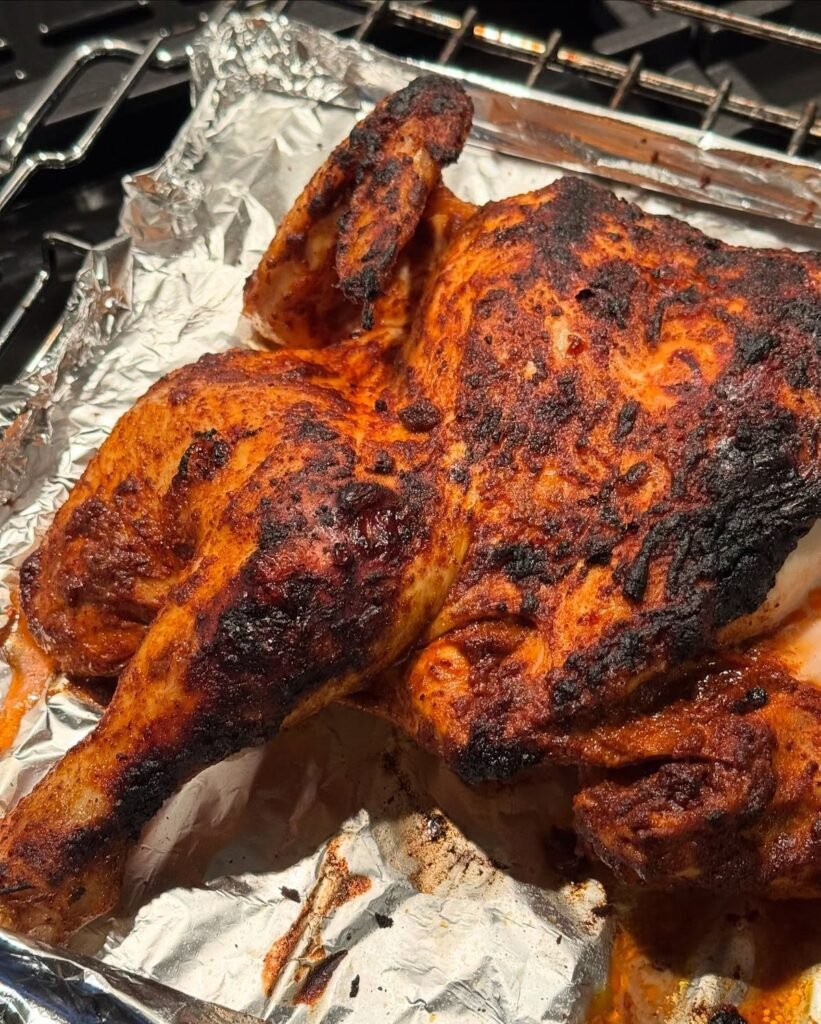 Slow-roasted to perfection, the chicken develops a beautifully golden, crispy skin while remaining tender, juicy, and succulent on the inside. The roasting process enhances the natural flavors of the chicken while locking in moisture for a mouth-watering experience.